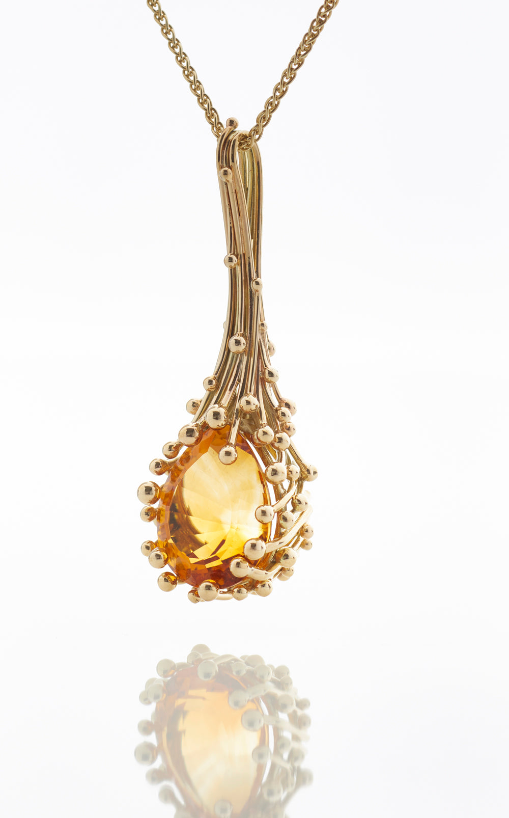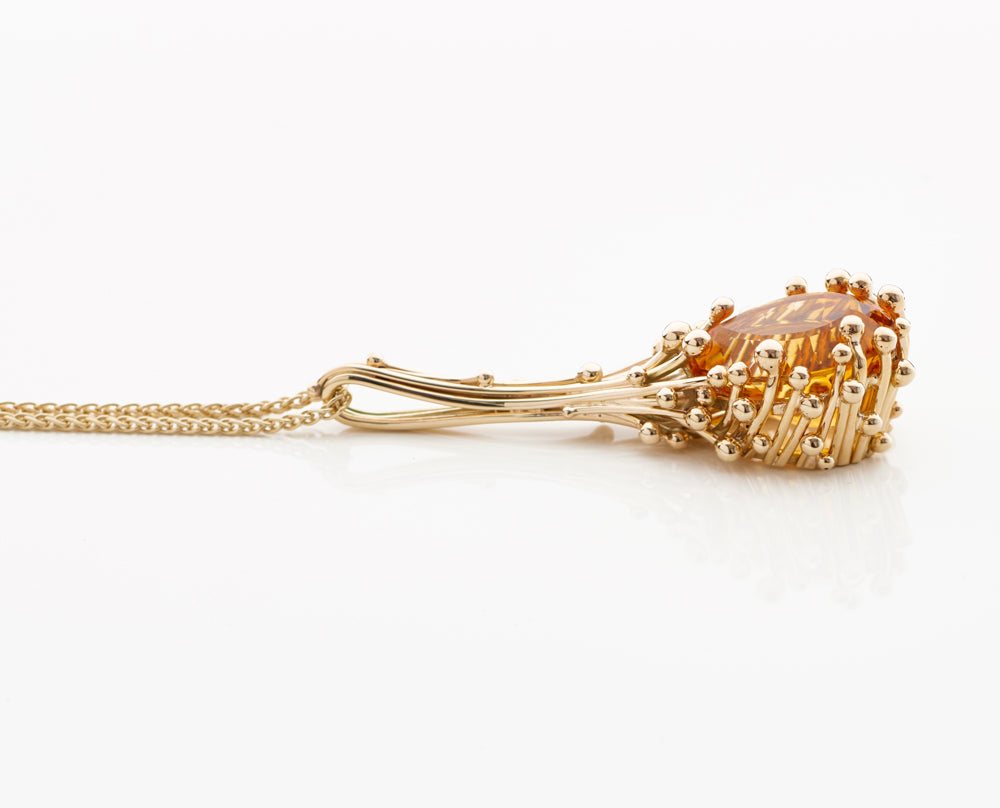 This sculptural pendant features a beautiful citrine encased in our handcrafted molecule setting.