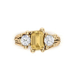 A spectacular imperial topaz nestled beside diamonds and cocooned within the organic flow of the molecular band. The stones of my client have been reworked into a piece of wearable art that will last a lifetime.