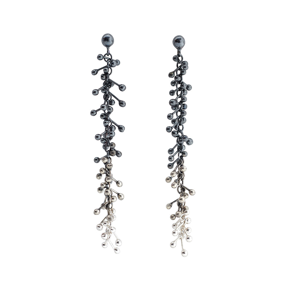 Ombre silver earrings, fading seamlessly from black, grey to silver. Modern drop earrings featuring ultra-slender lines and delicate details. With enhanced movement and natural flow to create an eye-catching accessory for everyday enjoyment.