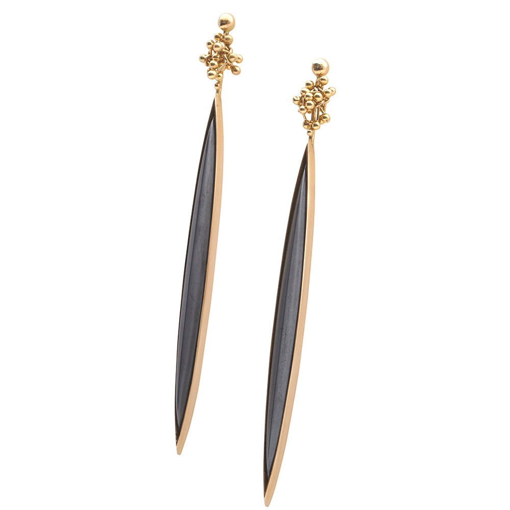 Hematite 18ct Gold Drop Earrings