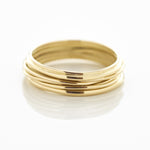 A new twist on a large gold band ring design. This subtle design is a contemporary take on the classic band ring. Comes in a choice of widths.