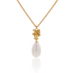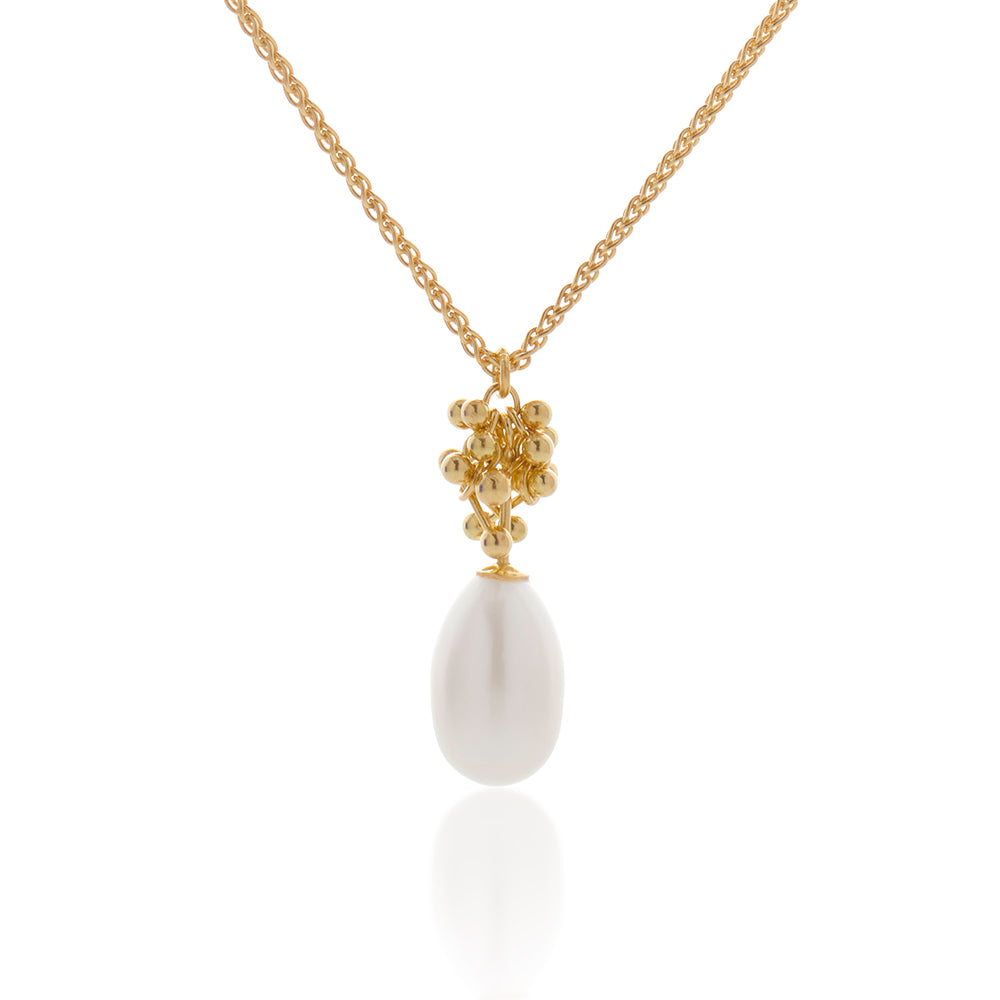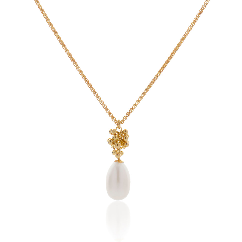 Material: 18ct yellow gold. 7-7.5mm, white freshwater pearl. Each gem is unique.
