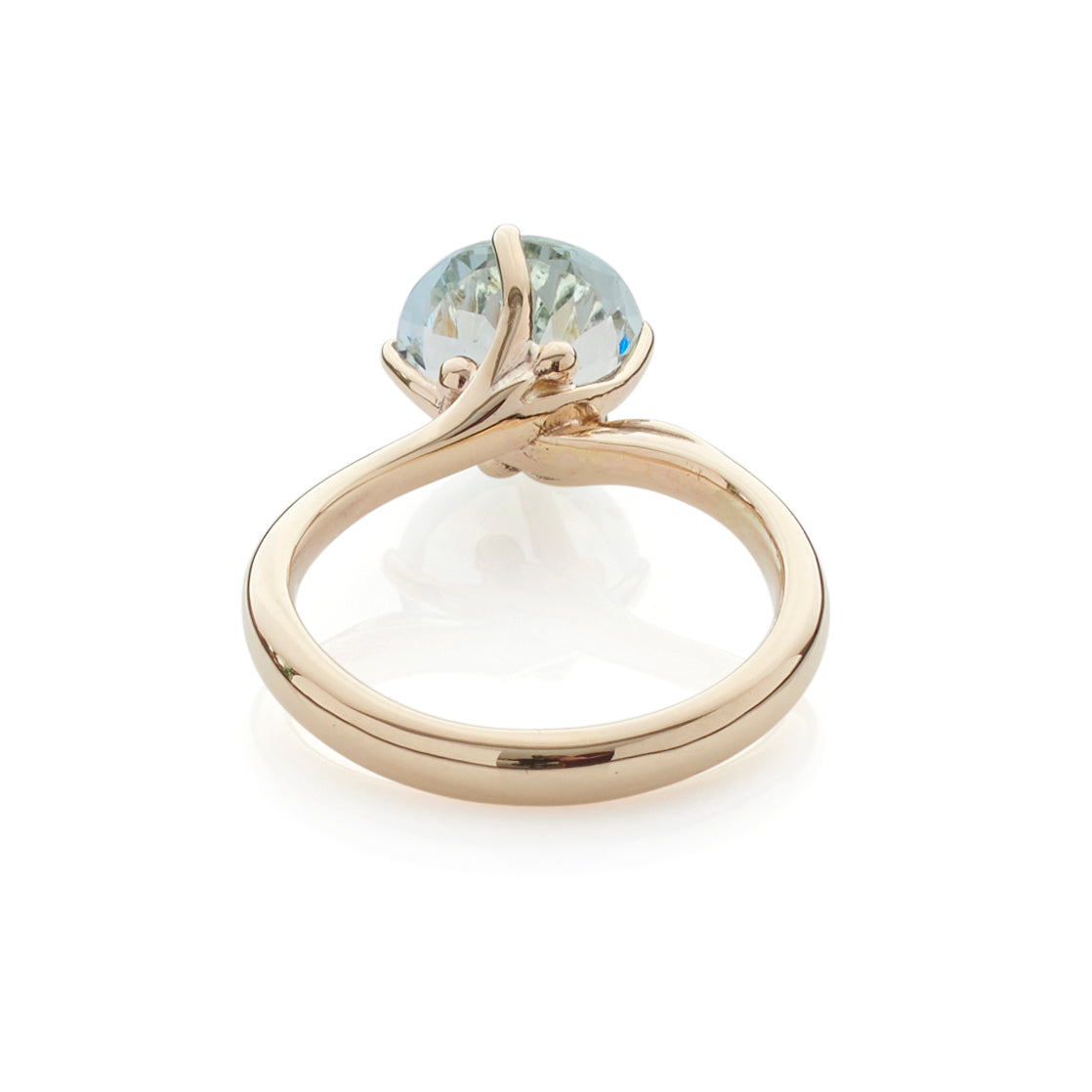An aquamarine set in an elegant and simple gold setting. The beauty of the aquamarine is enhanced by the fine detail of this handmade setting.