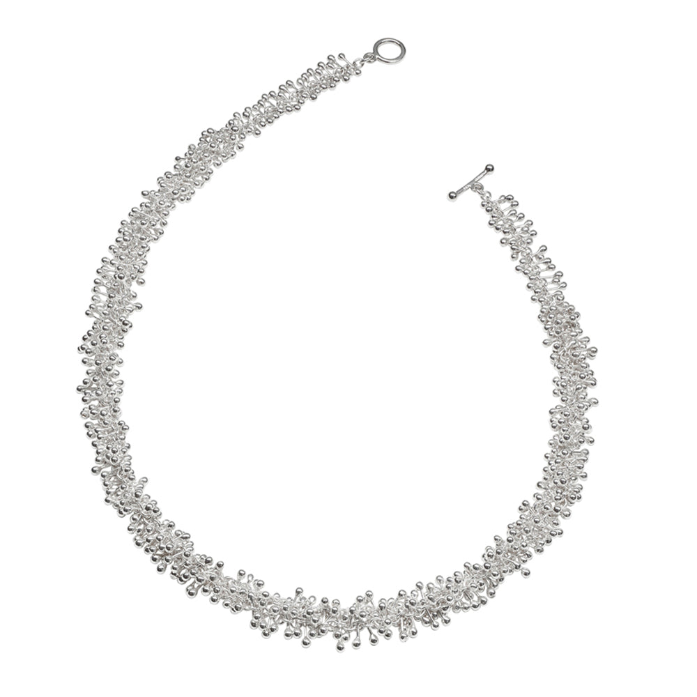 This statement silver necklace is a sophisticated alternative to your standard chain. The necklace delivers versatility that is exciting with an unique simplicity that looks stunningly elegant. The design emphasises an innovative and tactile approach to jewellery design.