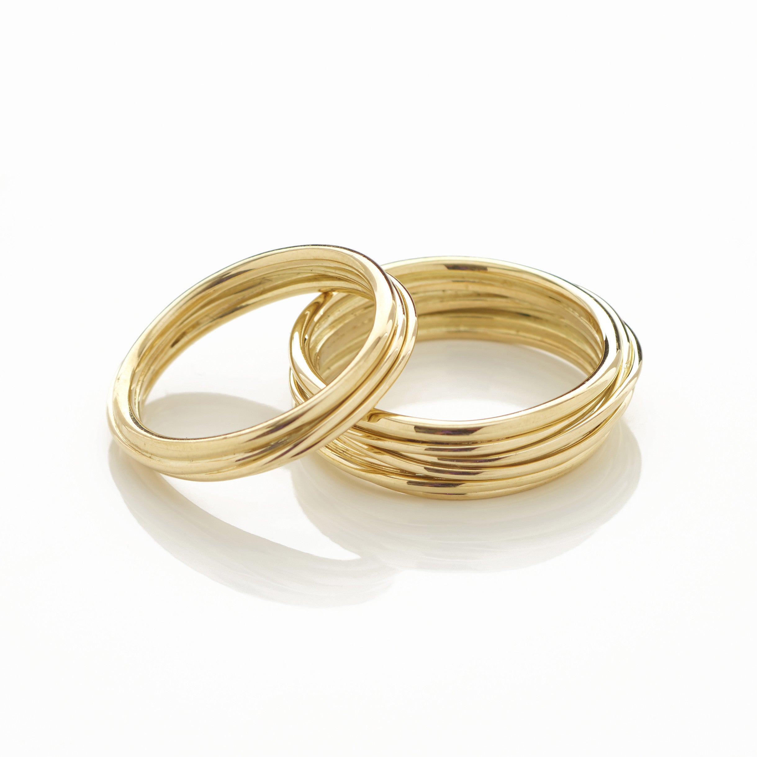 A new twist on a simple gold band ring design. This subtle design is a contemporary take on the classic band ring. Comes in a choice of widths.